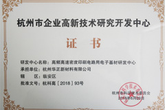 華正新材憑著卓越的創新能力得到了社會和各機構的認可。先后通過了ISO9001、ISO/TS16949質量管理體系和ISO14001環境管理體系認證,GBT 29490企業知識產權管理體系。主導研發生產的產品均已通過中國CQC、美國UL、日本JET和SGS認證。先后榮獲中國馳名商標、國家高新技術企業、中國印制電路行業優秀民族品牌、浙江省企業技術中心、浙江省企業研發中心、浙江省5G產業聯盟(唯一材料成員單位) ,浙江省企業研究院,浙江省高新技術企業研究開發中心,工信部國家級綠色工廠,浙江省專利示范企業, 浙江省級博士后工作站,中國馳名商標,中國電子電路行業優秀民族品牌企業等稱號,并于2020年獲得“國家企業技術中心”榮譽稱號。
